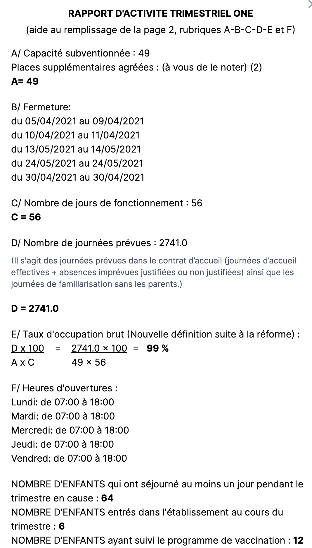 Nous calculons pour vous les éléments à rentrer dans votre rapport.