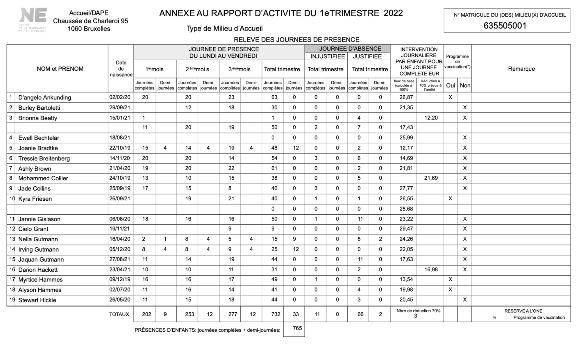 Annexe au rapport d'activités (ancienne version)