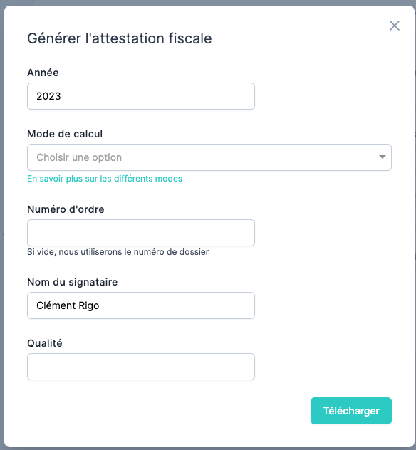Génération de l'attestation fiscale