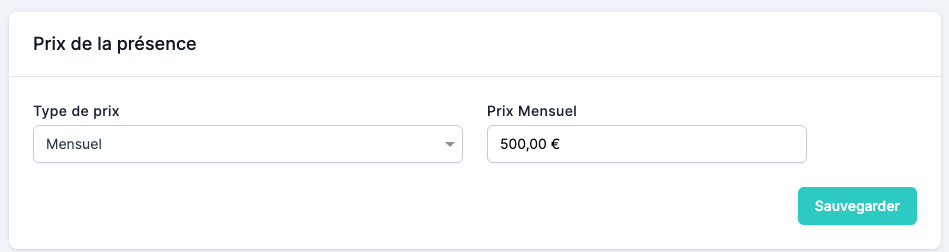 Ce type de tarification est typiquement choisi par les crèches privées. Il vous suffit d’indiquer le prix mensuel et de le sauvegarder.